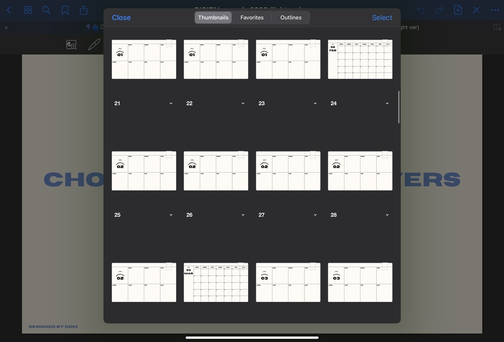- Weekly planner (5 pages per month)